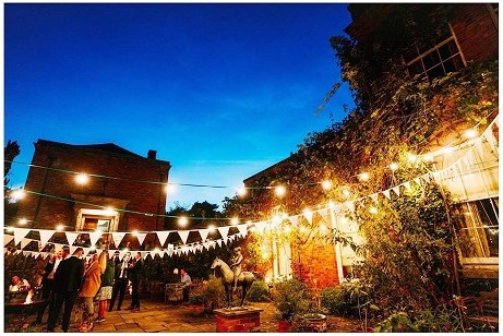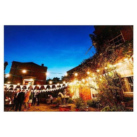 £95 per weekend for 70m including installation/maintenance for mounting the lights, for example across the courtyard at Walcot Hall (as pictured below).