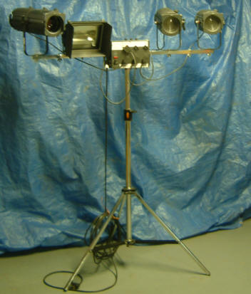 Each tripod has four 500 watt lights, three of which are spotlights and the other provides a flood beam.